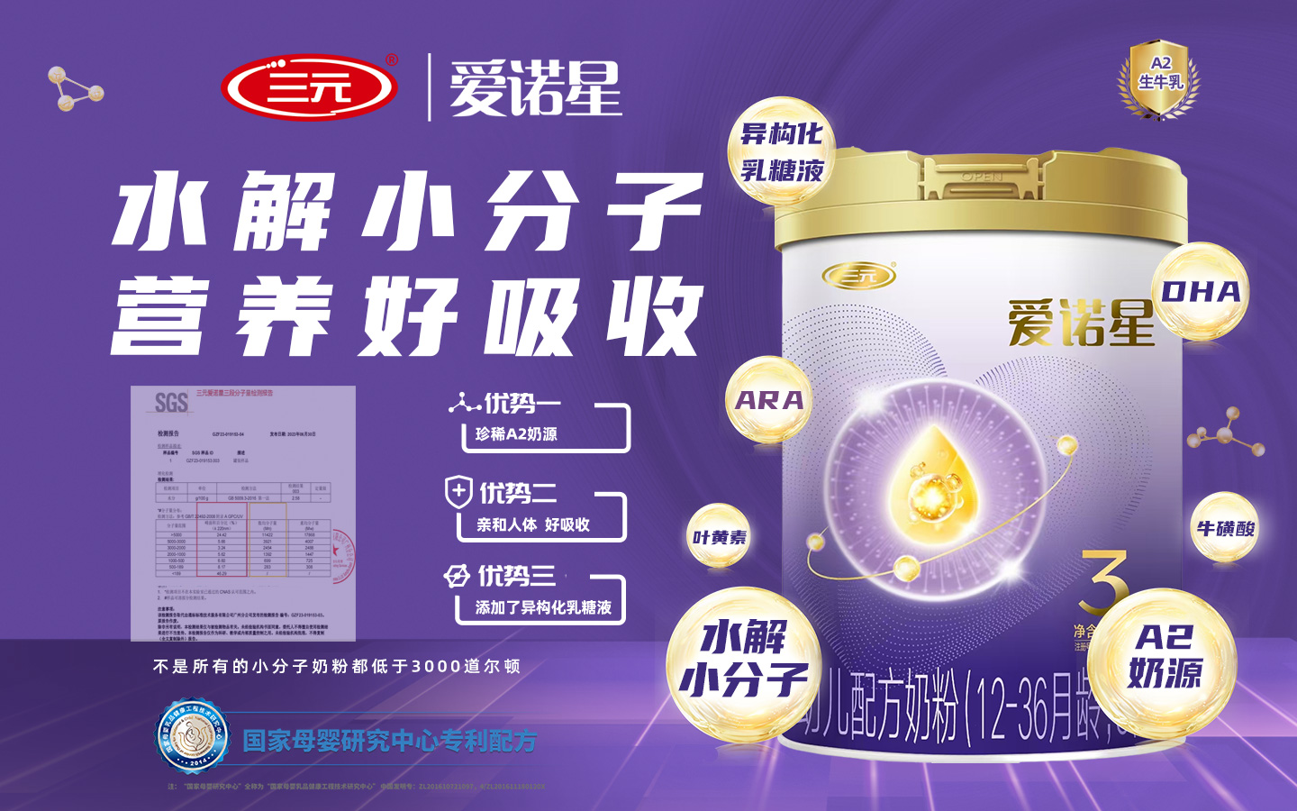 品牌名稱:三元愛諾星 主營產(chǎn)品:三元愛諾星嬰幼兒配方奶粉 品牌特色:珍稀100%A2奶源 水解小分子 營養(yǎng)好吸收