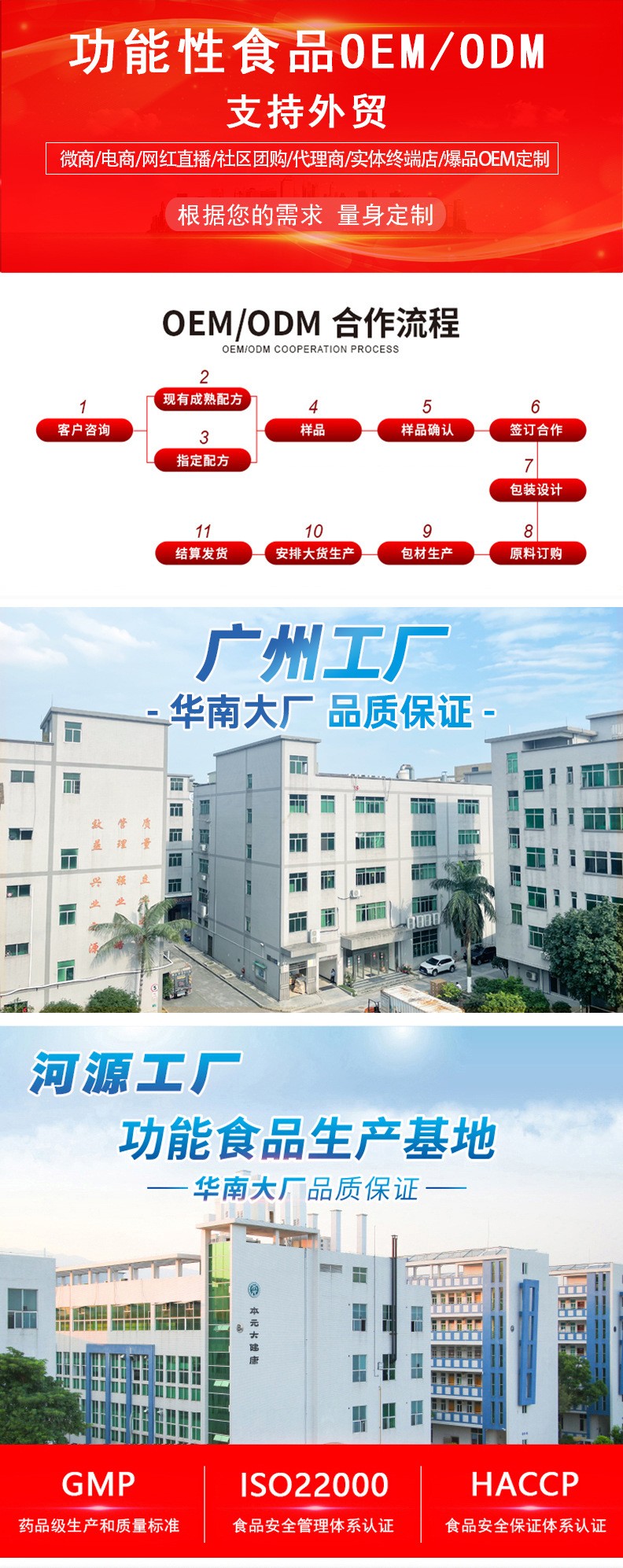 集團(tuán)公司設(shè)有固體車間、液體車間、益生菌專用車間、果蔬發(fā)酵車間。是一家專業(yè)從事食品、功能食品、保健品OEM、ODM供應(yīng)商,開發(fā)提供各種食品專利配方、藥食同源配方、功能性食品配方。針對美容院線、微商團(tuán)隊(duì)、直銷團(tuán)隊(duì)、電商平臺(tái)、抖音商戶等各種渠道開發(fā)針對性產(chǎn)品,保證產(chǎn)品開發(fā)技術(shù)的實(shí)時(shí)性與獨(dú)創(chuàng)性,公司可以根據(jù)客戶需求提供專業(yè)配方,并協(xié)助客戶申報(bào)專利。