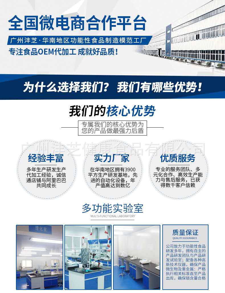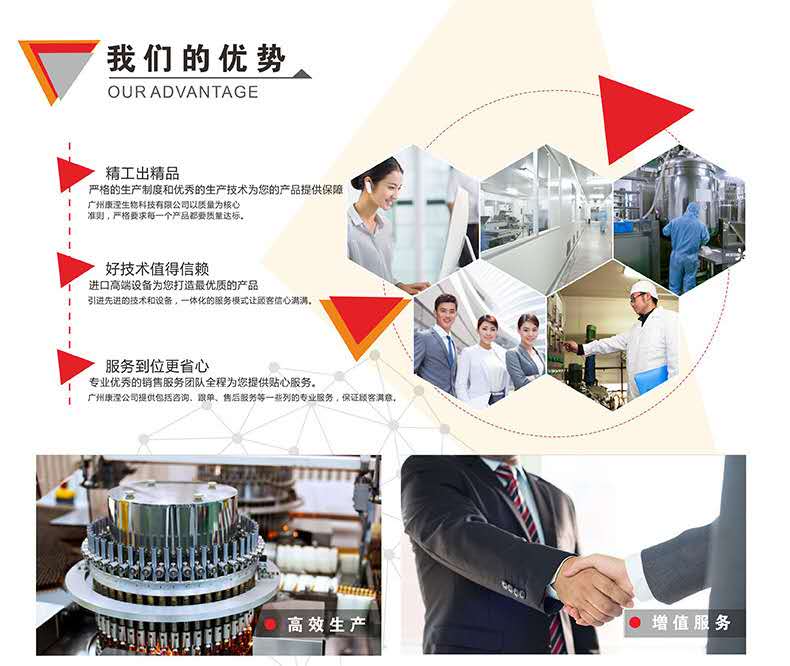 廣州灃芝致力于打造傳播健康與美麗,是集科研開發(fā)、產(chǎn)品制造、市場銷售、委托加工的高新科技綜合企業(yè)。 公司致力于功能性食品研發(fā)近10年,擁有自主的產(chǎn)品研發(fā)團(tuán)隊與產(chǎn)品研發(fā)試驗室;在華南地區(qū)建立起了一家占地面積3900平方米、已獲得A級食品SC認(rèn)證的高新技術(shù)生產(chǎn)工廠企業(yè),F(xiàn)擁有片劑、粉劑、顆粒劑、口服液等十一條生產(chǎn)線,已經(jīng)報批了近200個生產(chǎn)備案批文。生產(chǎn)六大劑型的功能性食品生產(chǎn)線60余臺套及配套設(shè)備,達(dá)到年產(chǎn)口服液12000萬支、片劑10億片、沖劑及粉類產(chǎn)品500萬盒(罐)的雄厚生產(chǎn)實力。