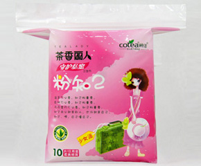 廈門(mén)柯佳衛(wèi)生用品有限公司旗下的茶香麗人衛(wèi)生巾,柔軟舒適,是專(zhuān)門(mén)針對(duì)少女研發(fā)設(shè)計(jì)的。本品運(yùn)用尖端科技導(dǎo)入茶工藝層,具有消炎、抗菌、抗氧化功能,還有消毒除臭、促進(jìn)人體新陳代謝,提高人體免疫能力,增強(qiáng)人體肌能等理療功能,純天然呵護(hù)、更舒適。