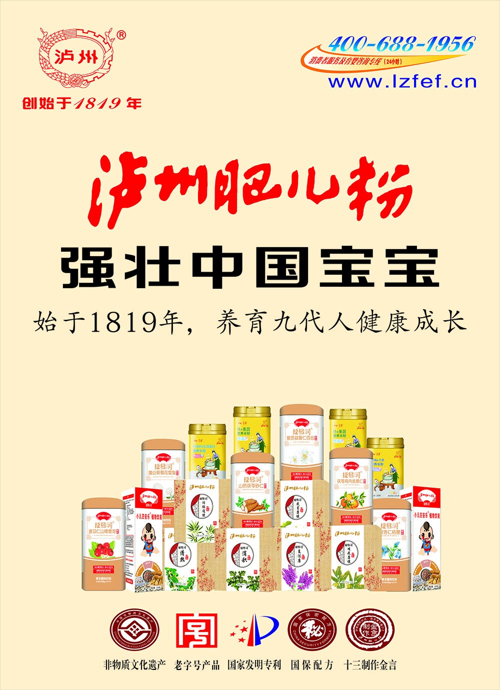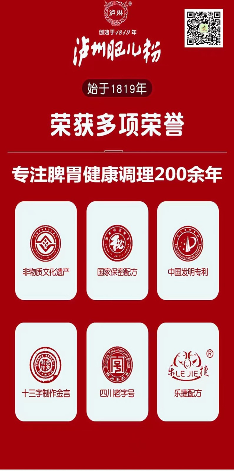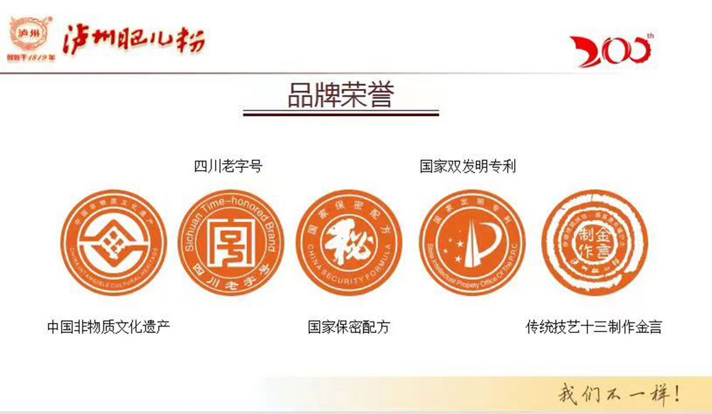 “瀘州肥兒粉”系有兩百年歷史傳承和六十年創(chuàng)牌與建廠史的嬰幼兒輔食及適合大眾養(yǎng)生和體弱多病中老年人食用的產(chǎn)品,我們獨(dú)特的“藥食同源配方”一度成為國(guó)家保密配方。“瀘州肥兒粉”的前生誕生于1819年瀘州人蔣宗明在小市開辦的“瀘州米羹羹”作坊。直到新中國(guó)成立后,“瀘州米羹羹”作坊的傳承人何汝彬于1956年6月將“瀘州米羹羹”作坊與當(dāng)時(shí)的瀘州市副食品加工廠合并成立了 “瀘州市地方國(guó)營(yíng)北城肥兒粉廠”,陳雅南任廠長(zhǎng)至退休!盀o州肥兒粉”是以“肥兒丸”古方為基礎(chǔ),主料為糙米,配料選用能健脾益胃、消食助運(yùn)的大豆、綠豆、苡仁、芡實(shí)、建神曲等7-21種藥食同源級(jí)食材經(jīng)過(guò)“炒、燒、烤、燜、烘、焙,磨、蒸、煮、炙、碾、沙、土”等十三道手工工藝制作,發(fā)明創(chuàng)造的我國(guó)首例嬰幼兒藥理配方米粉。1956年夏,產(chǎn)品基本定型,并以“瀘州”二字設(shè)計(jì)制作了品牌標(biāo)記,第一代“瀘州肥兒粉”正式誕生。1960年4月3日成功注冊(cè)“肥兒粉”商標(biāo);又于1979年10月31日獲準(zhǔn)以“瀘州”為商標(biāo)使用,從此“瀘州肥兒粉”擁有了雙商標(biāo)。1988年,“瀘州肥  兒粉”被瀘州市醫(yī)藥管理局正式確定為保健食品;1993年“瀘州肥兒粉”獲得蒙古國(guó)烏蘭巴托國(guó)際食品博覽會(huì)金獎(jiǎng)。
