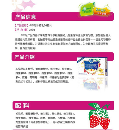 卡咪呢有機(jī)米粉系列是專為中國(guó)寶寶設(shè)計(jì)的營(yíng)養(yǎng)輔食,選用有機(jī)大米,科學(xué)搭配維生素AD等維生素,還特別添加;撬帷HA、AA等有助智力發(fā)育的營(yíng)養(yǎng)成分,富含15種營(yíng)養(yǎng)素。現(xiàn)上?ㄟ淠啬笅胗闷酚邢薰久嫦蛉珖(guó)空白市場(chǎng)區(qū)域誠(chéng)招卡咪呢有機(jī)米粉代理商。