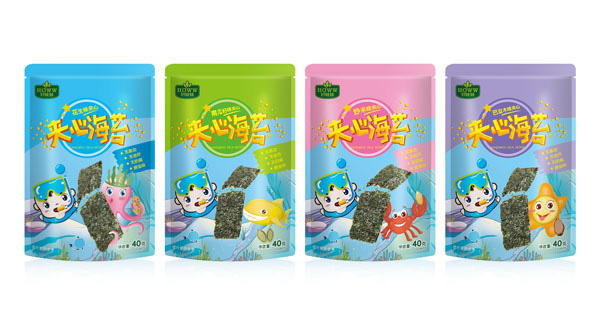 好娃娃夾心海苔系列有桶裝、袋裝兩個包裝,采用的是進(jìn)口無污染,自然生成且生長周期合適的條斑紫菜