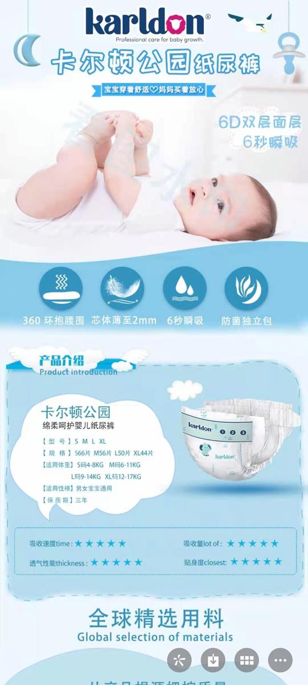 對(duì)于有寶寶的家庭來(lái)說(shuō),紙尿褲必不可少!但是面對(duì)市面上魚(yú)龍混雜的紙尿褲品牌,要如何選,怎么選更好用的產(chǎn)品呢,而這款卡爾頓公園紙尿褲 56片可是深得寶媽們的好評(píng)哦!自上市以來(lái)便圈粉無(wú)數(shù),產(chǎn)品上架率極高,口碑不俗!那么,它如此受歡迎呢?不妨跟著小編一起來(lái)看看它都具有哪些優(yōu)勢(shì)特點(diǎn)吧!