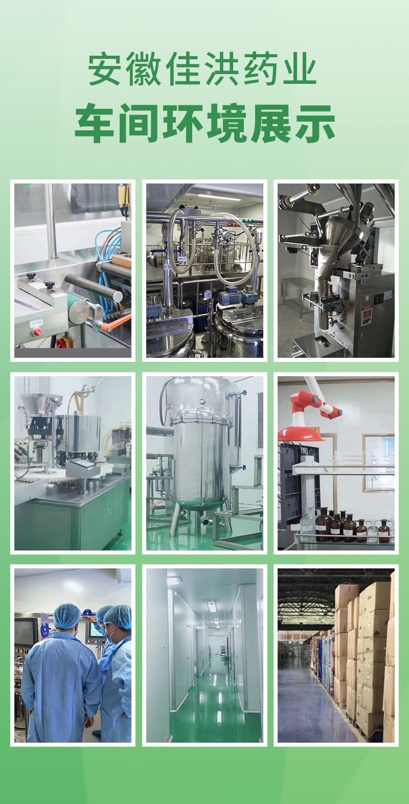 安徽佳洪健康產(chǎn)業(yè)有限公司位于全球最大的中藥材集散中心安徽亳州市,占地4600平方的現(xiàn)代化生產(chǎn)基地,其中生產(chǎn)車間占地2300平。