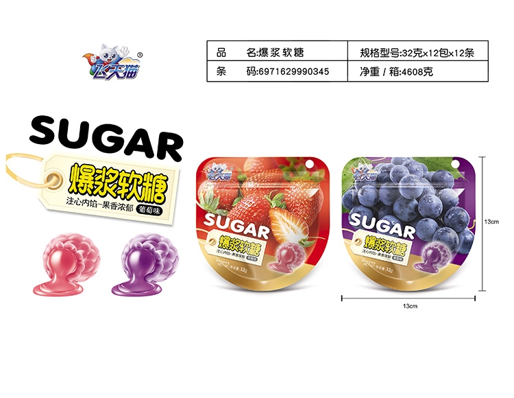 飛天貓?jiān)煨蛙浱,用料天然,精心制作,沒(méi)有香精、色素、防腐劑等添加,口感上清甜不黏膩,甜酸都適度,Q彈好滋味。大小適中,造型有創(chuàng)意,好吃又好玩。