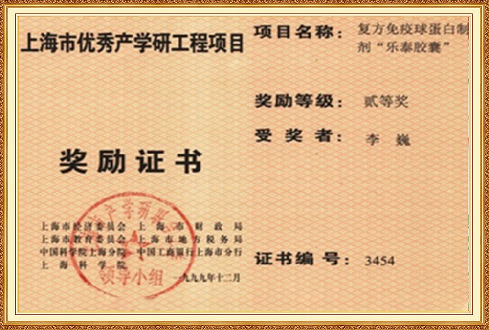 1997年,科學(xué)家們采用生物酶工程技術(shù)成功研制出牛乳蛋白多肽,輔以免疫球蛋白等活性功能因子,出品了具有激活人體自身免疫系統(tǒng)的標(biāo)志性免疫珍品“樂(lè)泰”膠囊,并榮獲國(guó)家發(fā)明專利,迄今為止,這頂成果仍無(wú)人超越。