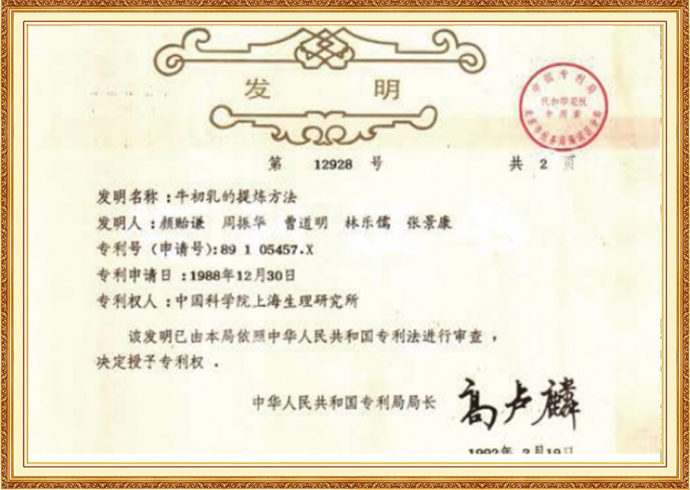 1989年,公司一款具有獨(dú)立知識(shí)產(chǎn)權(quán)的產(chǎn)品“乳珍”問(wèn)世,該產(chǎn)品凝聚了中科院上海生理研究所楊雄里院士等多位專家的智慧結(jié)晶,是早獲得國(guó)家發(fā)明專利的牛初乳制品。“乳珍”的誕生,開(kāi)啟了國(guó)內(nèi)牛初乳研究應(yīng)用的先河,經(jīng)鑒定委員會(huì)專家認(rèn)定,該產(chǎn)品為國(guó)內(nèi)首創(chuàng),并獲得"國(guó)家級(jí)新產(chǎn)品"殊榮,被指定為亞運(yùn)會(huì)專用補(bǔ)劑。