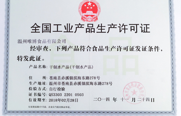 公司名稱:溫州唯博食品有限公司