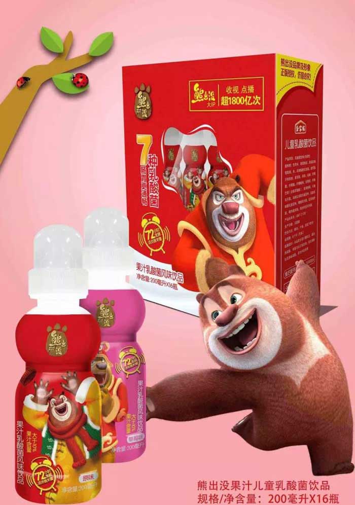 品牌名稱:熊出沒 主營產(chǎn)品:熊出沒兒童乳酸菌飲品 品牌特色:7種乳酸菌,舒緩腸胃