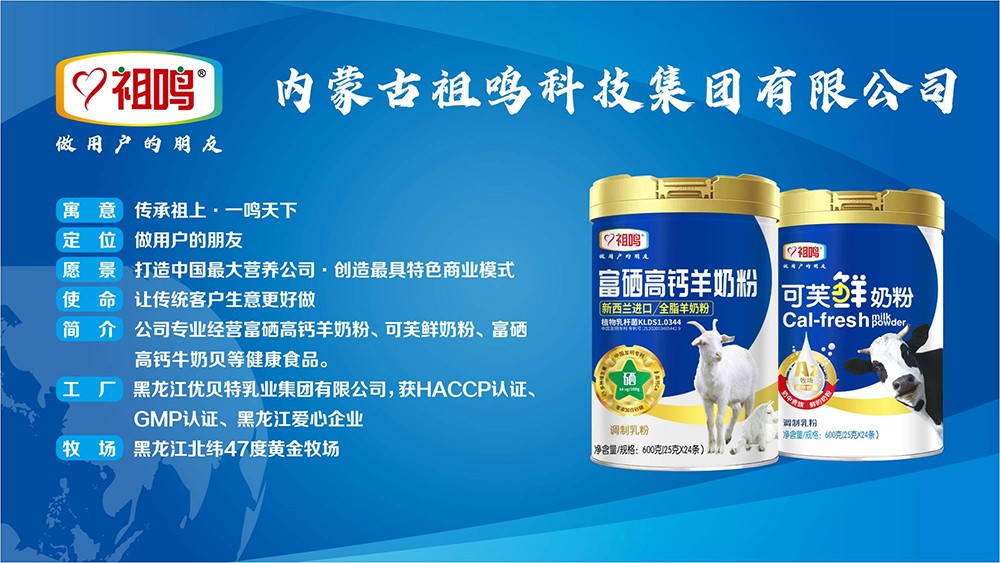 內(nèi)蒙古祖鳴科技集團有限公司旗下祖鳴奶粉,做用戶的好朋友。致力于為消費者提供營養(yǎng)、健康的奶粉、奶貝、奶條,百年傳承、百年品質(zhì) 、百年信譽、百年精神、傳承祖上、一鳴天下、為偉大祖鳴百年夢努力奮斗。