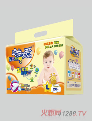 點點愛嬰兒紙尿褲是韓國安秀集團旗下高端嬰兒紙尿褲產(chǎn)品,除了雙向透氣、防漏和魔術(shù)貼等諸多賣點之外,還添加了抗菌護膚三大植物組合,更好的呵護bao--bao的小屁屁,是一款很不錯的嬰兒防尿用品。