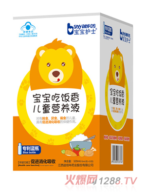 寶寶護(hù)士營(yíng)養(yǎng)滴劑自上市以來(lái),一直備受廣大消費(fèi)者的贊譽(yù)。寶寶護(hù)士營(yíng)養(yǎng)滴劑讓喂養(yǎng)變得簡(jiǎn)單,讓營(yíng)養(yǎng)吸收更快速!“滴滴精華,純粹吸收”,協(xié)助家長(zhǎng)們共同育養(yǎng)健康、聰明、有活力的孩子。