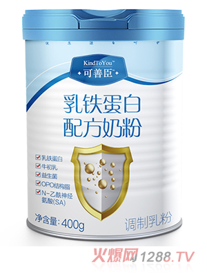 可善臣乳鐵蛋白配方奶粉,采用法國進(jìn)口奶源,提煉出天然乳鐵蛋白成份,以脫脂/脫鹽乳清粉為主要原料,每100g中含乳鐵蛋白200mg,搭配牛初乳、免疫球蛋白,三重免疫營養(yǎng)組合,為成長保駕護(hù)航。