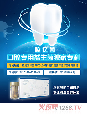 第一,腔億菌是東北大學(xué)的專利產(chǎn)品,也是國內(nèi)益生菌的首家專利,專利名稱:植物乳桿菌KLDS1001及其在抑制口腔變異鏈球菌中的用途