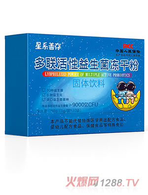 星系善存多聯(lián)活性益生菌凍干粉 ,嚴選進口益生菌菌種 ,菌種純正,活性更強!10種益生菌+6種益生元,配方科學(xué),營養(yǎng)均衡,每盒添加活性益生菌≥9000億CFU,以精湛工藝加工而成,品質(zhì)過硬!更由中國人民保險承保,放心好選擇!