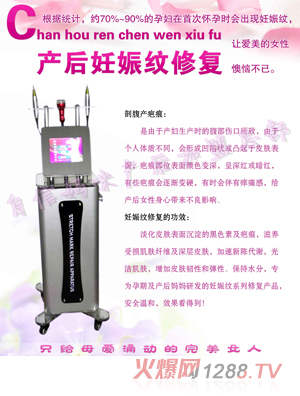 孕期女性的子宮也會(huì)逐漸地膨大,當(dāng)腹部在快速膨脹的情形下,超過肚皮肌膚的伸張度,就會(huì)導(dǎo)致皮下組織所富含的纖維組織及膠原蛋白纖維,因經(jīng)不起擴(kuò)張而斷裂,產(chǎn)生妊娠紋。妊娠紋的出現(xiàn)讓愛美的媽媽們很是苦惱。自信媽咪產(chǎn)后妊娠紋修復(fù)儀應(yīng)運(yùn)而生。