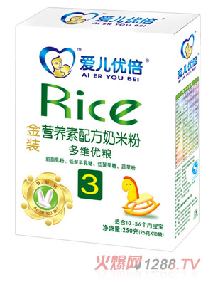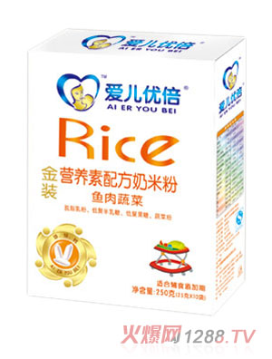 愛兒優(yōu)倍魚肉蔬菜金裝營(yíng)養(yǎng)素配方奶米粉添加有魚肉粉和蔬菜粉,適合10到36個(gè)月bao--bao食用。該系列產(chǎn)品主要以優(yōu)質(zhì)米粉為原料,添加多種鐵、鋅、鈣、維生素A、D等多種營(yíng)養(yǎng)物質(zhì),具有免煮即沖即食的優(yōu)點(diǎn)。
