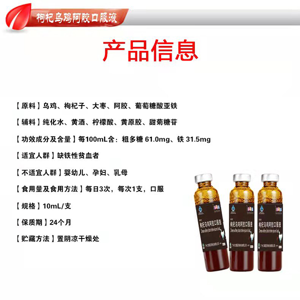 【產(chǎn)品名稱】枸杞烏雞阿膠口服液