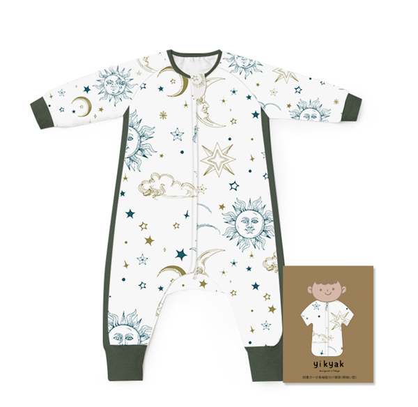 yikyak四層紗布長袖分腿睡袋(側(cè)拼款) 擁抱太陽的月亮產(chǎn)品展示