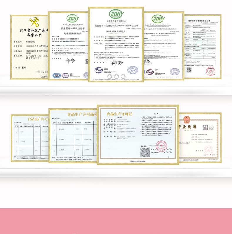 漳州童世界食品有限公司主營一站式代加工OEM業(yè)務,致力于健康兒童食品、功能性代餐食品、凍干燕窩的研發(fā)與生產(chǎn),公司占地面積12000平方米,始終秉承已科技為先導、以先進的現(xiàn)代化管理依托、已“顧客滿意第一”為宗旨的經(jīng)營方針、致力發(fā)展成為一家研發(fā)和制造健康、美味、營養(yǎng)的食品企業(yè)。 公司的誠信、實力和產(chǎn)品質(zhì)量獲得業(yè)界的認可。歡迎各界朋友蒞臨參觀、指導和業(yè)務洽談。