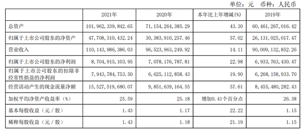 剛剛,伊利發(fā)布2021年度報(bào)告,報(bào)告期內(nèi)實(shí)現(xiàn)營業(yè)總收入 1,105.95 億元,較上年同期增長 14.15%,凈利潤 87.32 億元, 較上年同期增長 23.00%。
