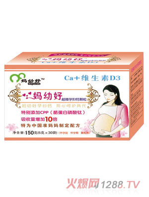 孕期衛(wèi)生么要補(bǔ)鈣?孕期胎兒發(fā)育所需要的鈣完全來源于母體,再加上孕婦自身對鈣的需求,因此,在孕期準(zhǔn)媽媽需要補(bǔ)充大量的鈣來滿足需求。那么孕媽媽補(bǔ)鈣選什么產(chǎn)品好呢?市場上有很多不錯(cuò)的產(chǎn)品,這里給大家推薦一款:媽幼好超微孕婦鈣。該品不但可以很好的滿足孕媽媽對鈣的需求,而且每購2盒即贈(zèng)《孕產(chǎn)婦營養(yǎng)食譜》書籍1本。